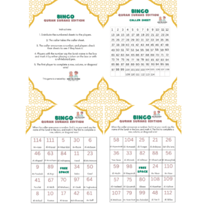 This set includes 6 Bingo sheets for players, a caller sheet, an easy-to-follow instructions sheet and tokens, making it ideal for family nights, classrooms, or Islamic gatherings. Designed to combine learning and fun, this game is a must-have for meaningful entertainment and Quranic knowledge.